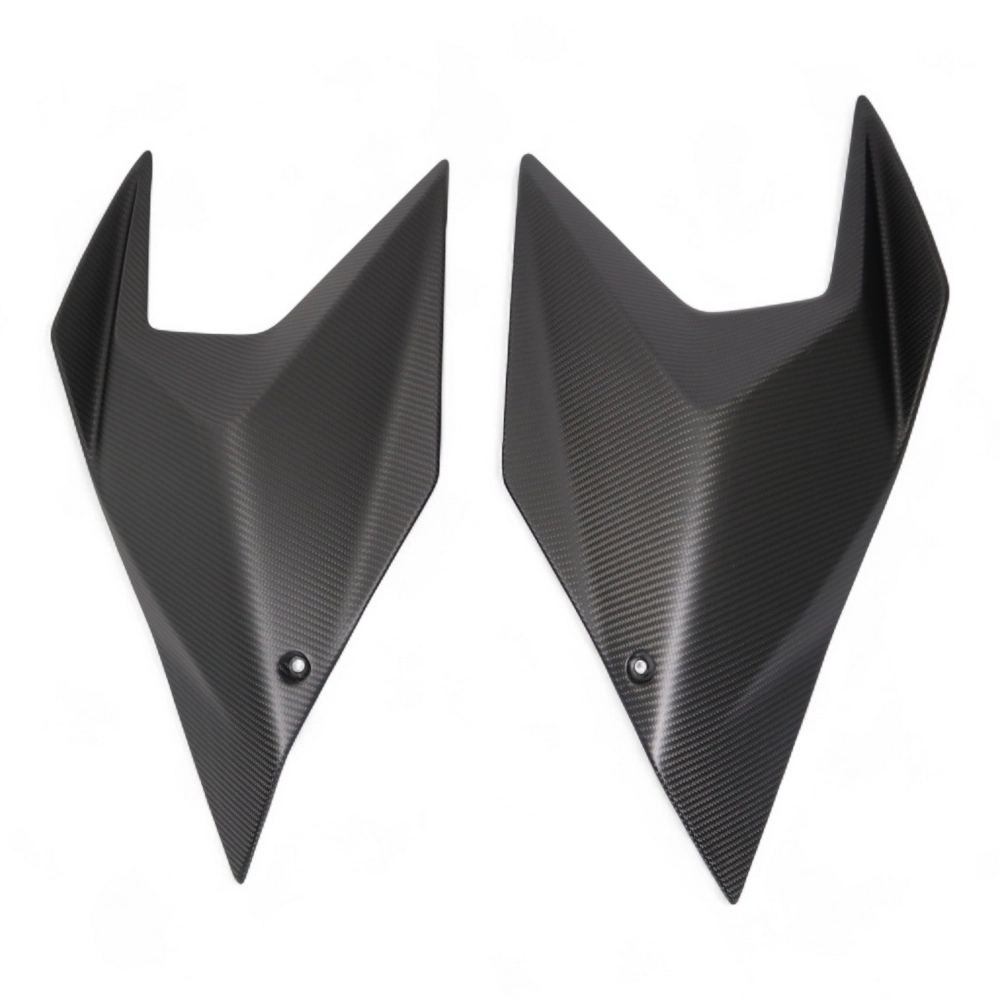 Ecopes latérales carbone KTM 1290 Super Duke GT 2019-2022, livré sans visserie ou autres fixations. Les perçages sont déjà effectués sur les carénages moto en carbone.