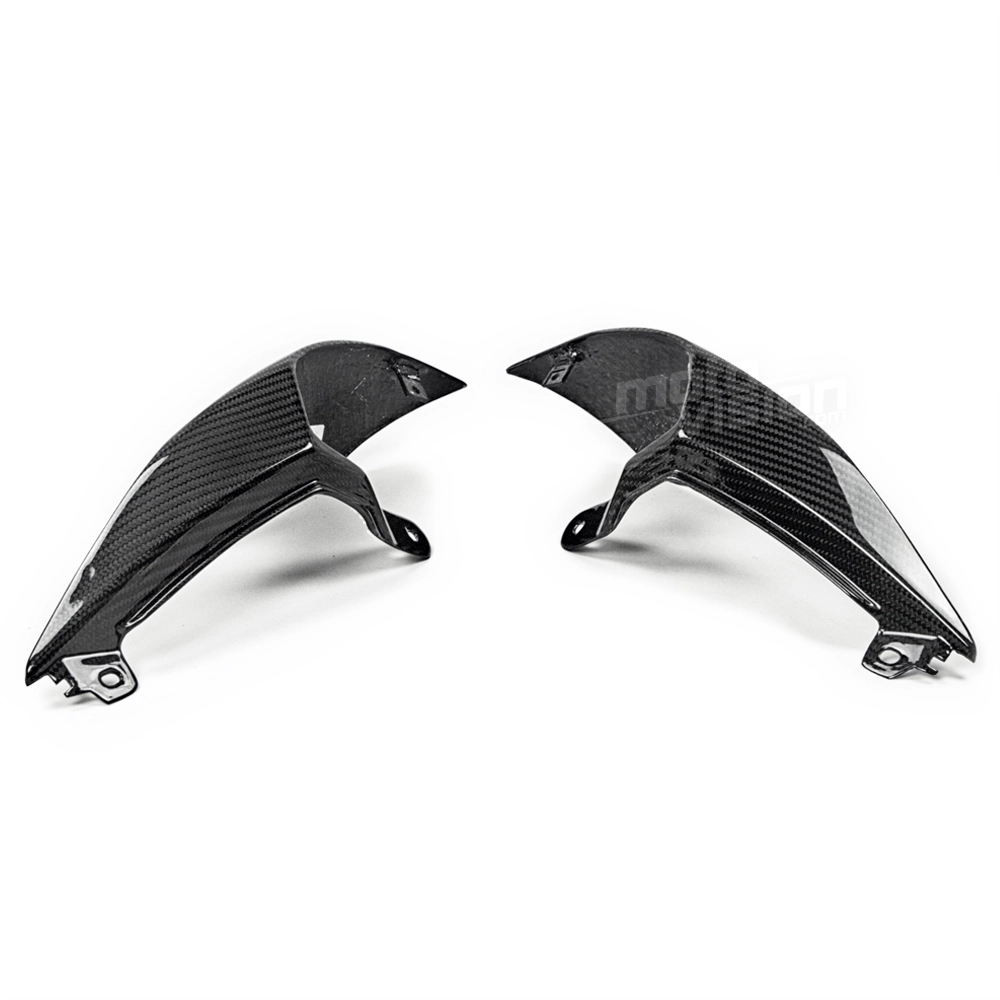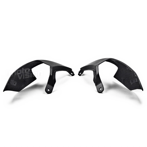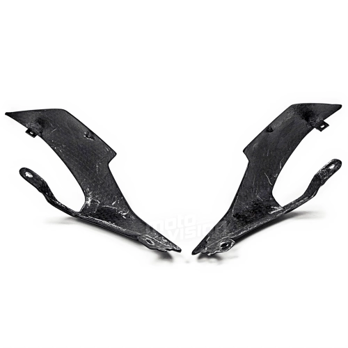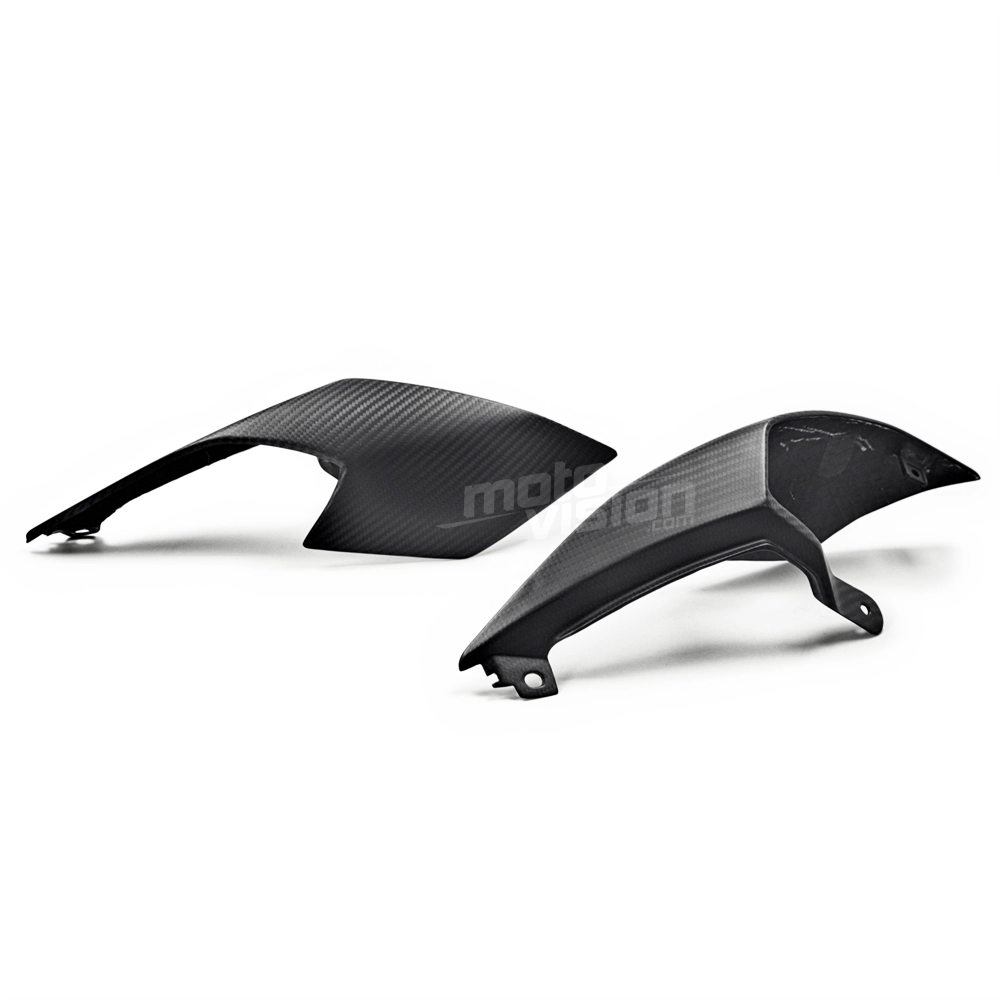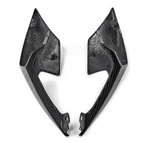 Ecopes de selle carbone Triumph Street Triple 660 et 765 2020-... , livré sans visserie ou autres fixations. Les perçages sont déjà effectués sur les carénages moto en carbone.