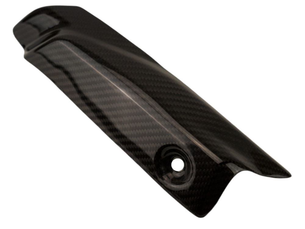 Protection d'échappement carbone Triumph Street Triple 660 765 2017 - 2022, livré sans visserie ou autres fixations. Les perçages sont déjà effectués sur les carénages moto en carbone.