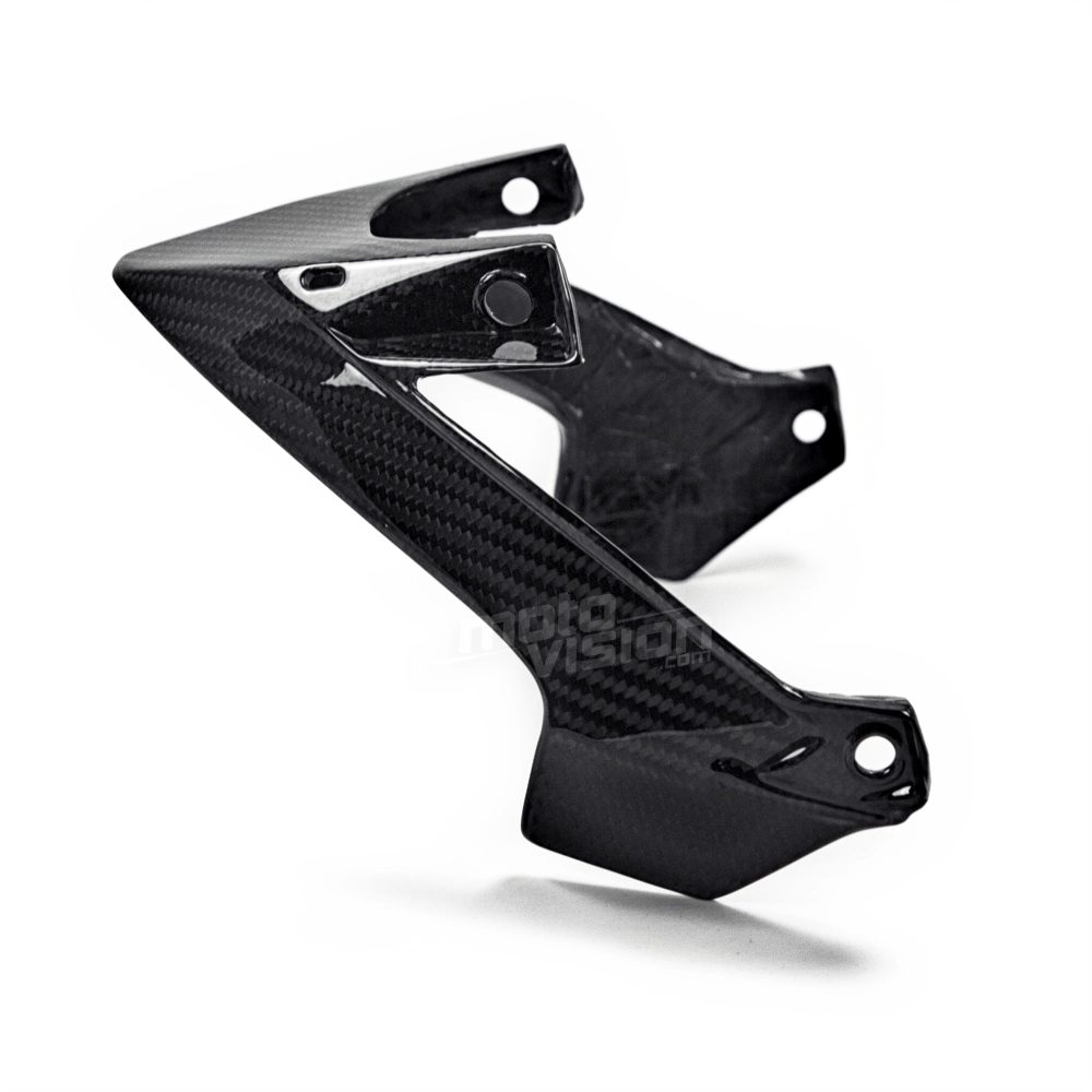 partie avant Sabot carbone Triumph Street Triple 765, livré sans visserie ou autres fixations. Les perçages sont déjà effectués sur les carénages moto en carbone.