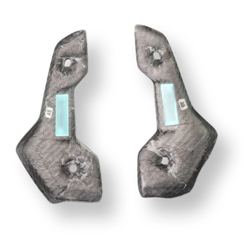 Les pièces sont en carbone véritable, comprenant une couche extérieure de carbone et deux couches intérieures en fibre de verre.