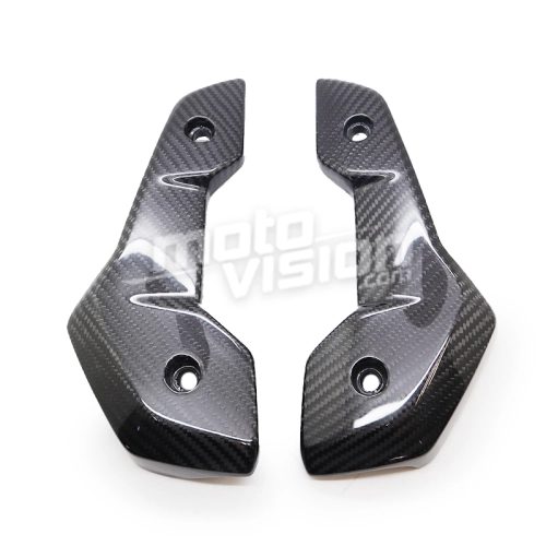 Ecopes de radiateur carbone Triumph Trident 660 2021-, livré sans visserie ou autres fixations. Les perçages sont déjà effectués sur les carénages moto en carbone.