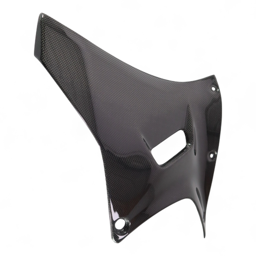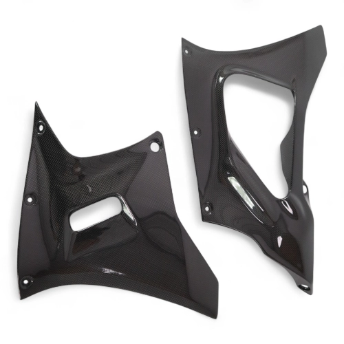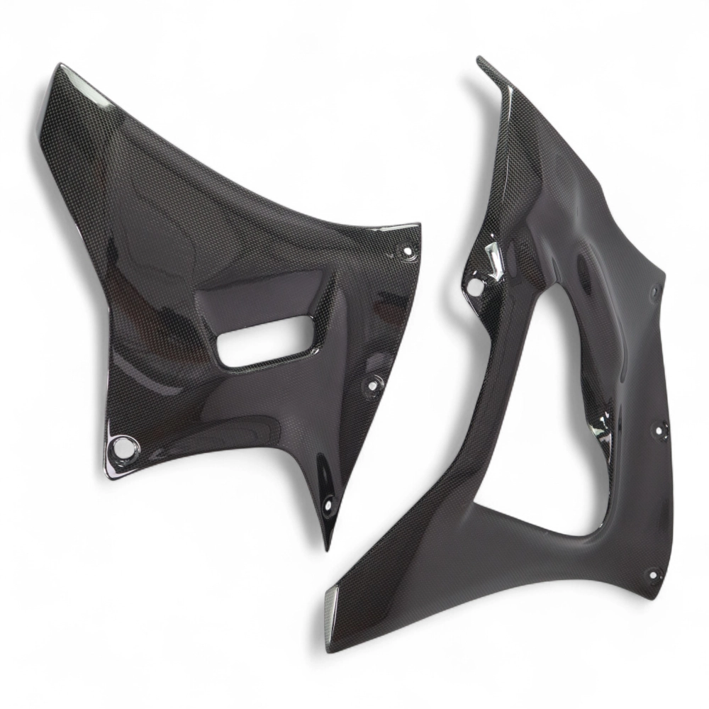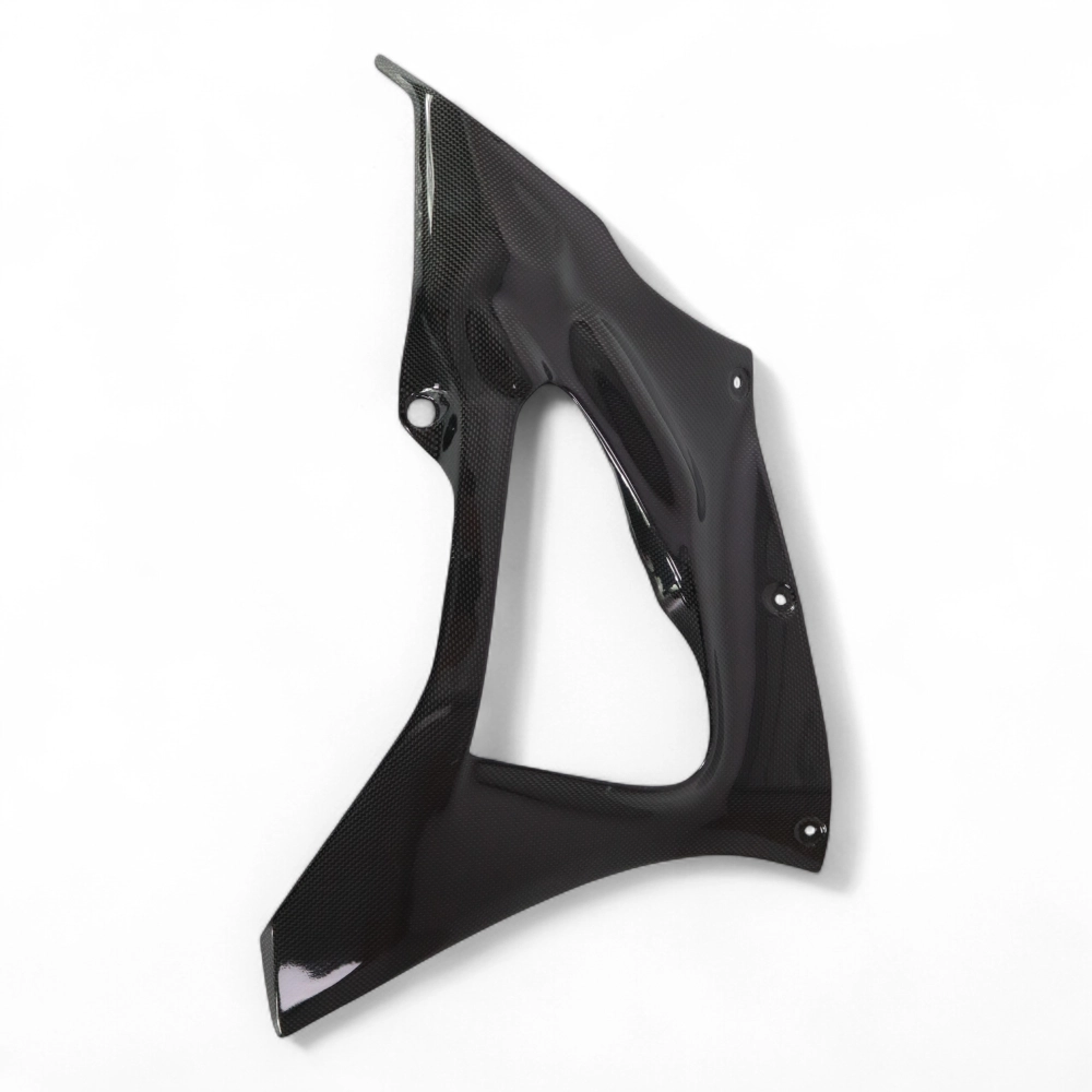 Sabot en 2 parties carbone Yamaha R7 2022, livré sans visserie ou autres fixations. Les perçages sont déjà effectués sur les carénages moto en carbone.