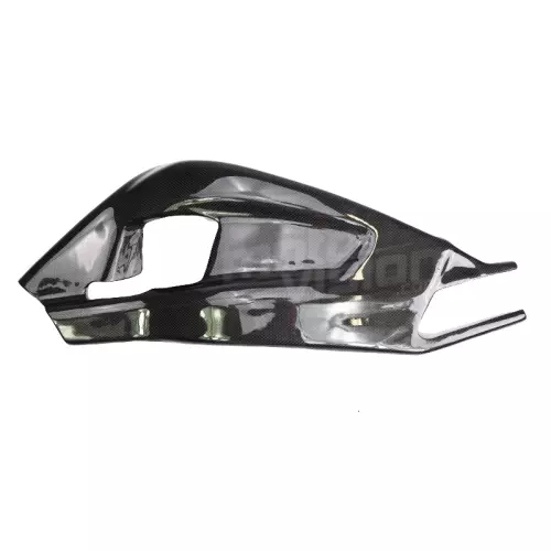 Protection moto avec une couche extérieure en véritable carbone sergé gloss (uniquement disponible dans cette finition). Livrée sans visserie ou autres fixations.