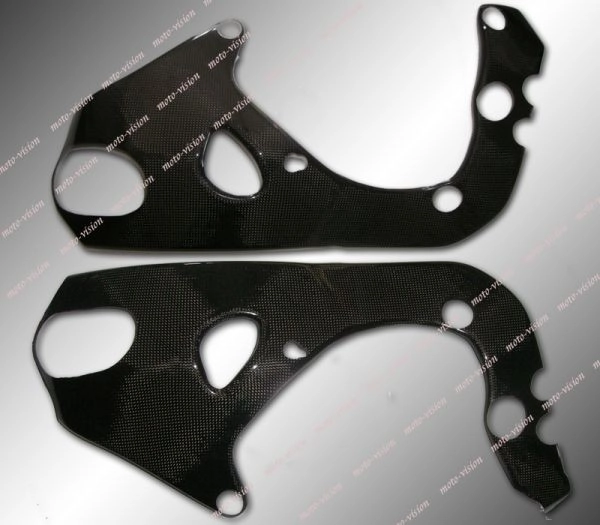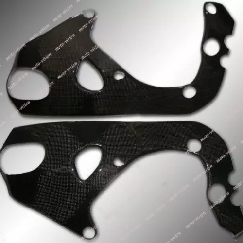 Protection moto avec une couche extérieure en véritable carbone sergé gloss (uniquement disponible dans cette finition). Livrée sans visserie ou autres fixations.