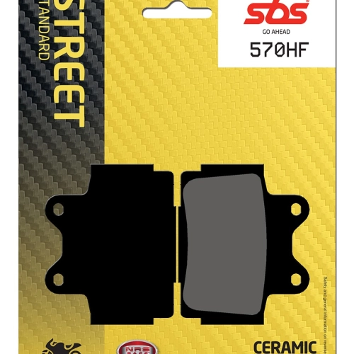 Plaquettes de frein SBS 570HF de la gamme Street Organique, idéales pour remplacer vos plaquettes d'origine afin d'obtenir un freinage stable, un haut niveau de confort, une grande durée de vie et une protection des disques dans des conditions humides et sèches pour motos et scooters.