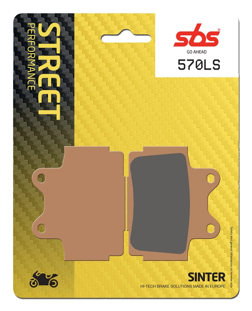 Plaquettes de frein SBS 570 (LS) de la gamme Street Sinter - Métal Fritté arrière. Les plaquettes n'abîment pas le disque, leur performance reste stable qu´il fasse sec ou humide et elles ne nécessitent pas de rodage thermique. Associées à la garniture HS sur frein avant, elles fournissent la puissance de freinage nécessaire et attendue.