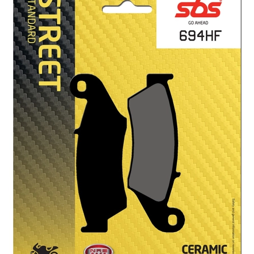 Plaquettes de frein SBS 694HF de la gamme Street Organique, idéales pour remplacer vos plaquettes d'origine afin d'obtenir un freinage stable, un haut niveau de confort, une grande durée de vie et une protection des disques dans des conditions humides et sèches pour motos et scooters.
