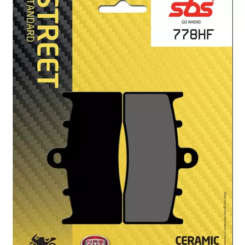 Plaquettes de frein SBS 778HF de la gamme Street Organique, idéales pour remplacer vos plaquettes d'origine afin d'obtenir un freinage stable, un haut niveau de confort, une grande durée de vie et une protection des disques dans des conditions humides et sèches pour motos et scooters.