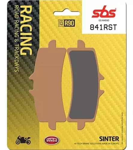 Plaquettes de frein SBS 841RST de la gamme Métal fritté racing route et piste, idéales pour remplacer vos plaquettes d'origine afin d'obtenir un freinage de qualité.
