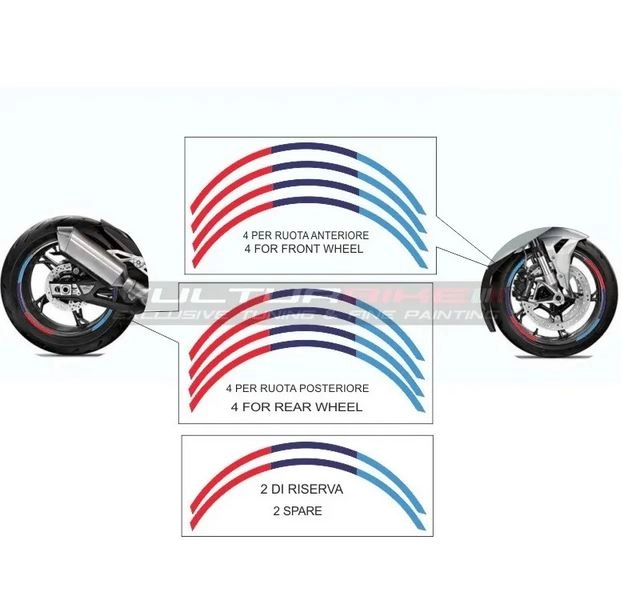 Personnalisez votre moto avec les stickers Kit d?autocollants pour roues de 17 pouces - tous les modèles. Les stickers adhésifs de décoration Vulturbike sont découpés dans du vinyle teinté anti UV.