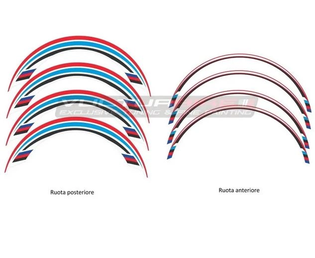 Personnalisez votre moto avec les stickers Kit d'autocollants universels pour roues BMW. Les stickers adhésifs de décoration Vulturbike sont découpés dans du vinyle teinté anti UV.
