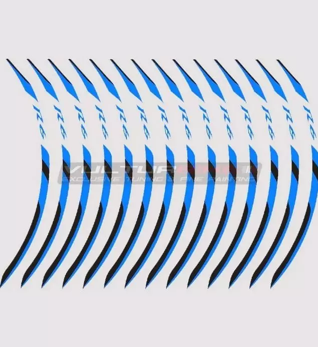Personnalisez votre moto avec les stickers Autocollants bleu noir pour roues de moto - Yamaha R6. Les stickers adhésifs de décoration Vulturbike sont découpés dans du vinyle teinté anti UV.
