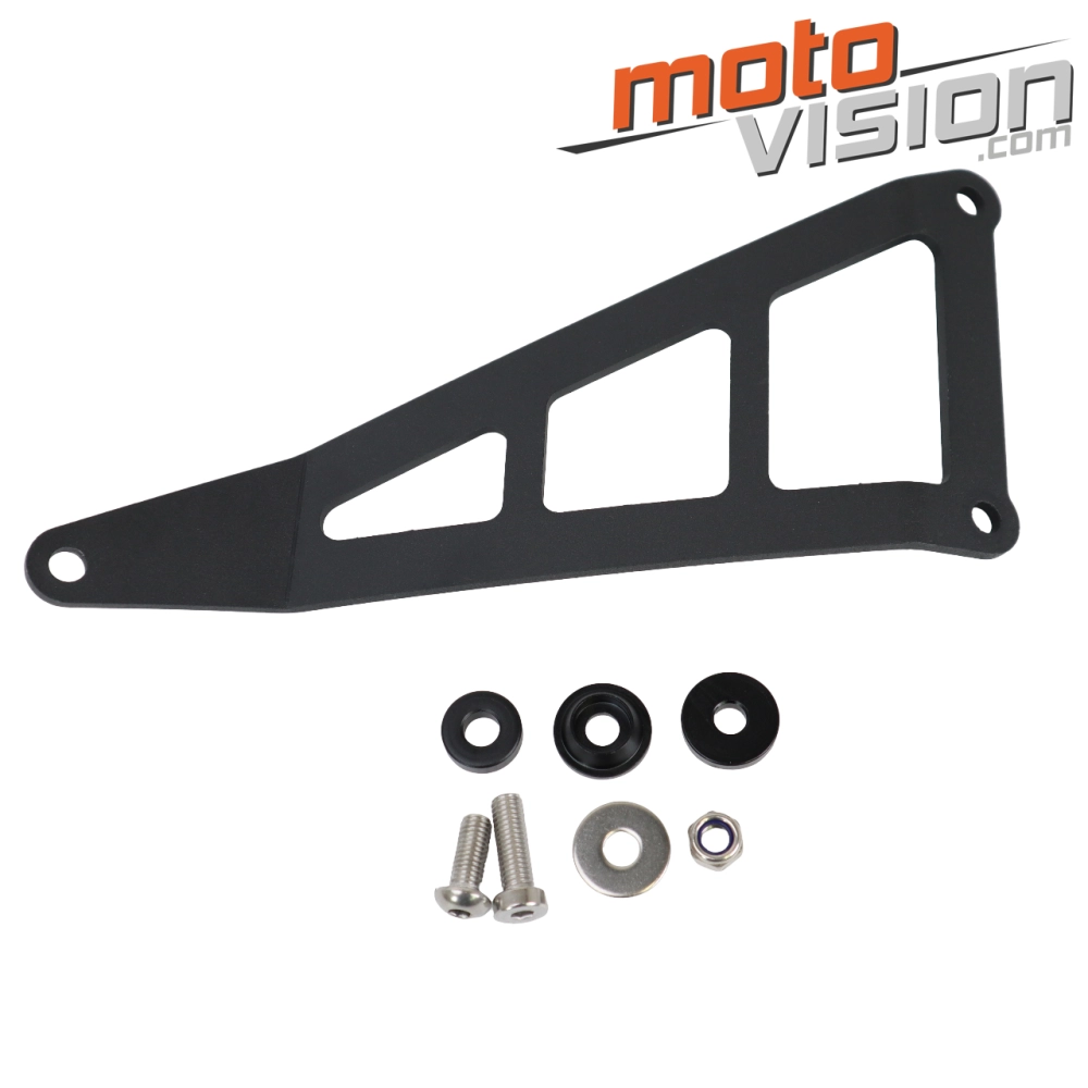 Support d'échappement en alliage acier noir, se monte à la place du support d'origine. Attention, chaque patte de fixation du pot est compatible avec un modèle de moto en particulier, précisé dans le titre du produit.