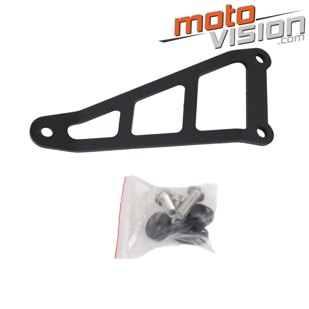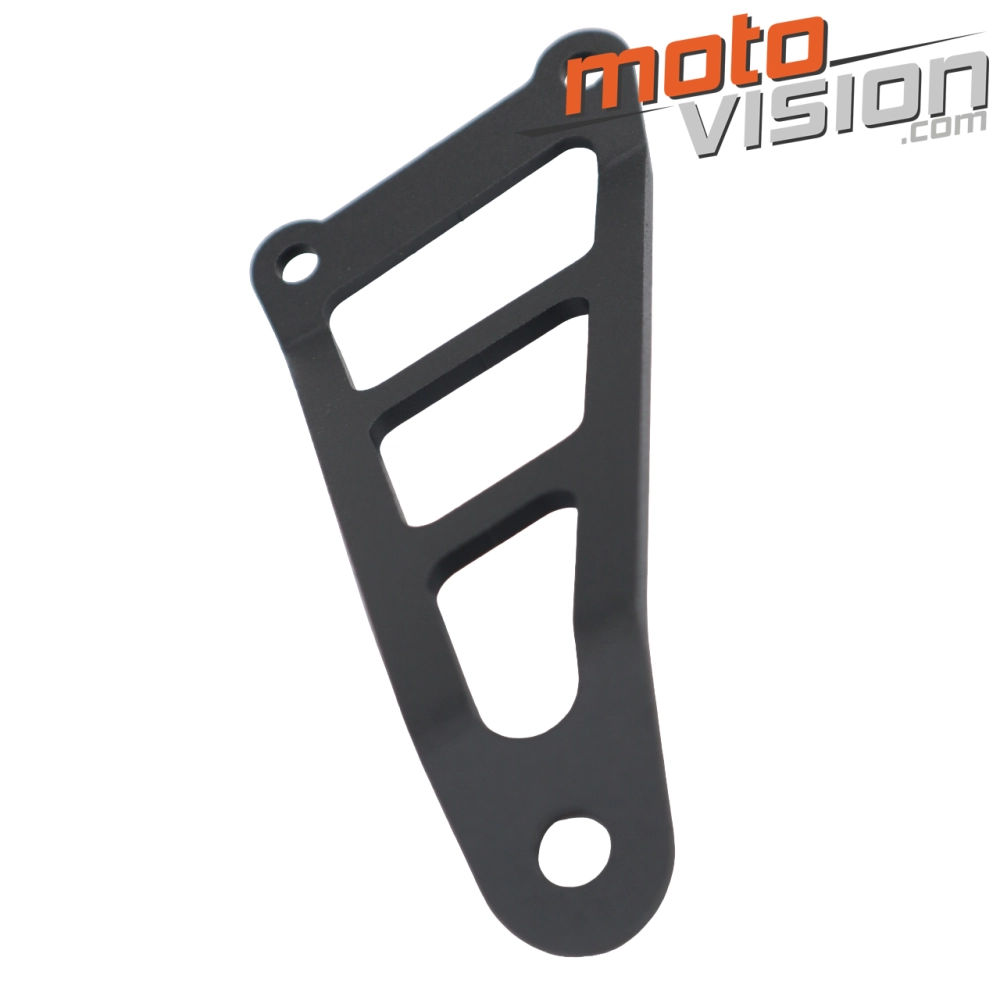 Support d'échappement en alliage acier noir, se monte à la place du support d'origine. Attention, chaque patte de fixation du pot est compatible avec un modèle de moto en particulier, précisé dans le titre du produit.