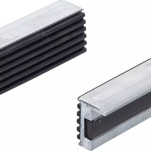 Mors de protection pour étau - aluminium - largeur 125 mm - 2 pièces pour serrer délicatement des pièces sensibles en aluminium, cuivre, etc. La mâchoire de protection adhère à l’étau au moyen de la barre magnétique intégrée. Le mors de protection possède un revêtement en matière plastique.