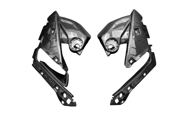 Parties supérieures de flancs carbone BMW R1250RS 2019-, livré sans visserie ou autres fixations. Les perçages sont déjà effectués sur les carénages moto en carbone.