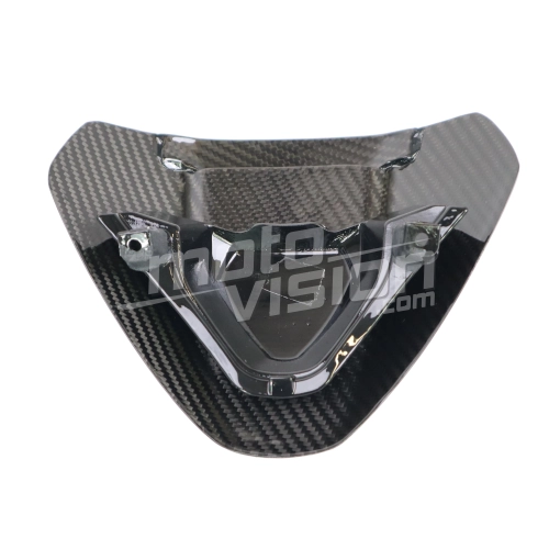 Cache compteur carbone vernis pour Ducati Hypermotard 950 2019-, livré sans visserie ou autres fixations. Les perçages sont déjà effectués sur les carénages moto en carbone.
