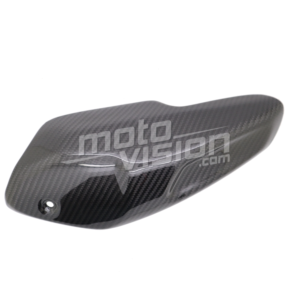 Pare chaleur de silencieux Carbone Triumph Tiger GT/GT PRO/RALLY/RALLY PRO 900 2020-, livré sans visserie ou autres fixations. Les perçages sont déjà effectués sur les carénages moto en carbone.