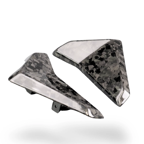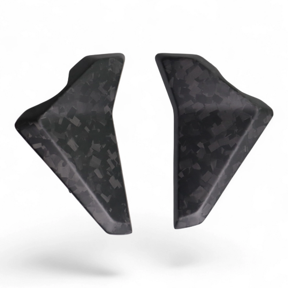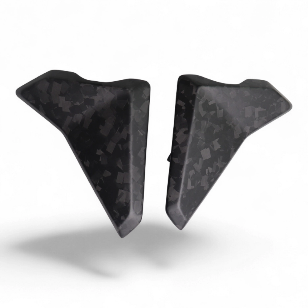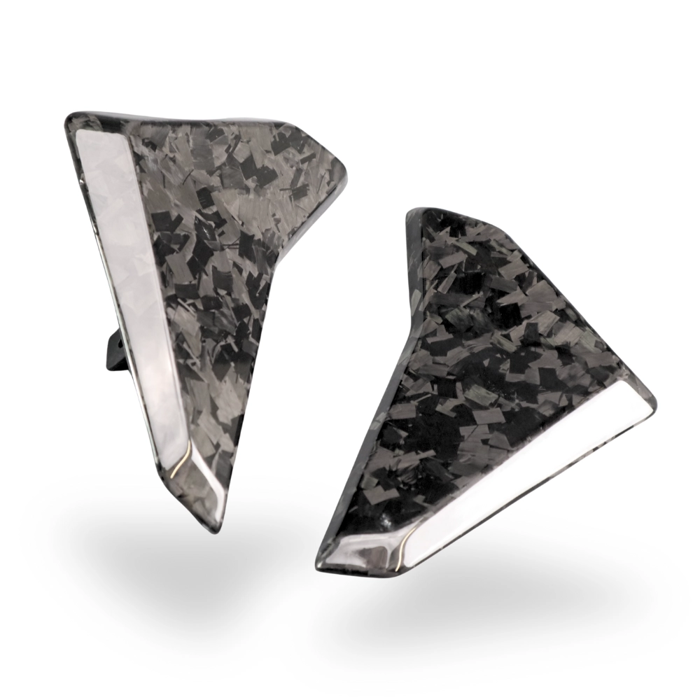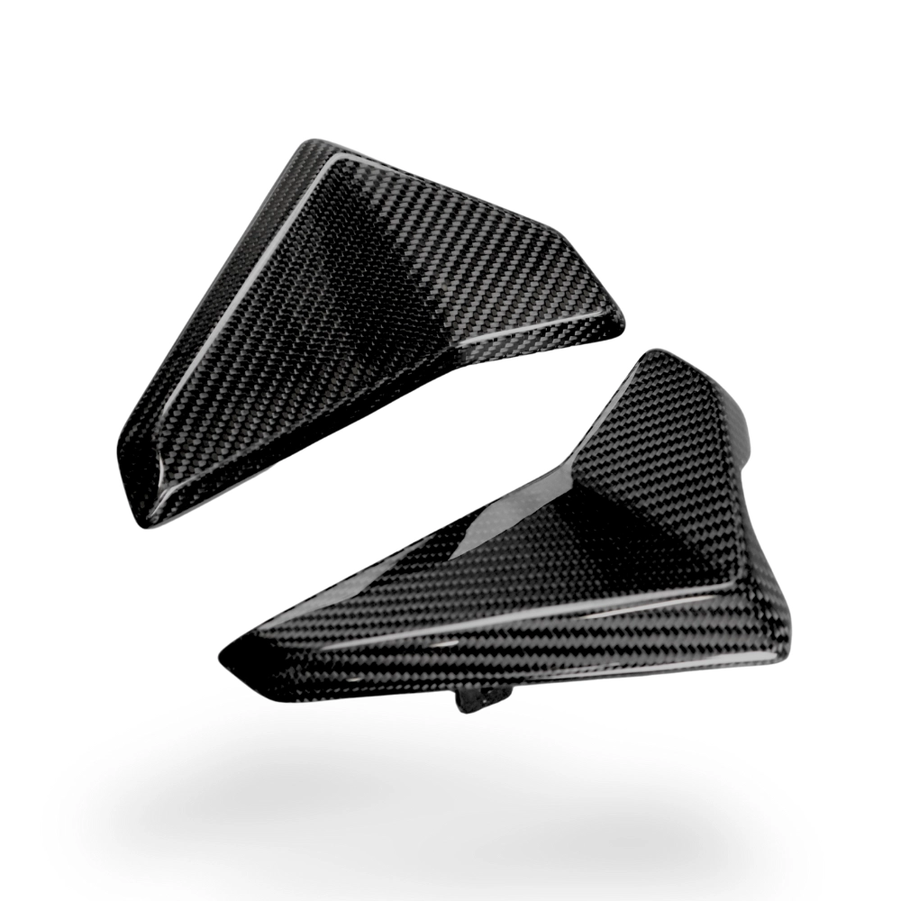 Ecopes de radiateur Carbone Triumph Street Triple 765 RS 2023- à monter directement sur les points de fixation d'origine de votre moto en remplacement du carénage d'origine. Les pièces en carbone sont livrées sans visserie.