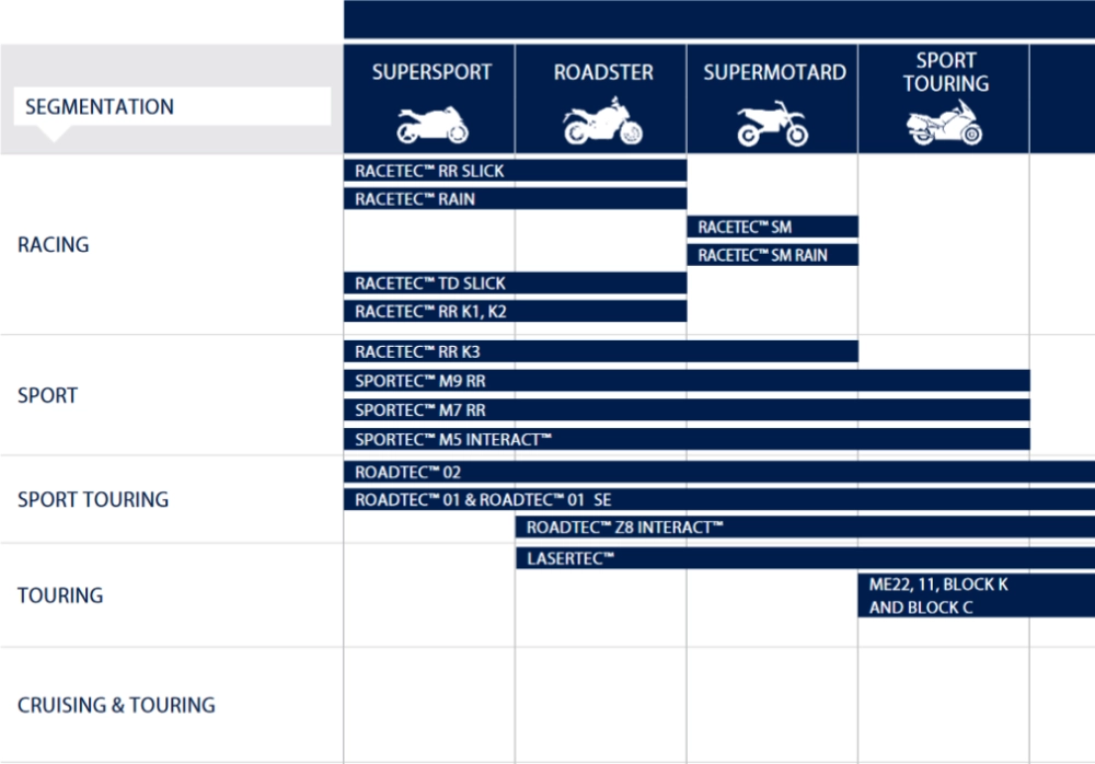 Single Ply, structure radiale pure : La structure du pneu est semblable à celle du pneu d'origine, et il est facile de bien configurer la moto pour optimiser votre expérience sur piste.