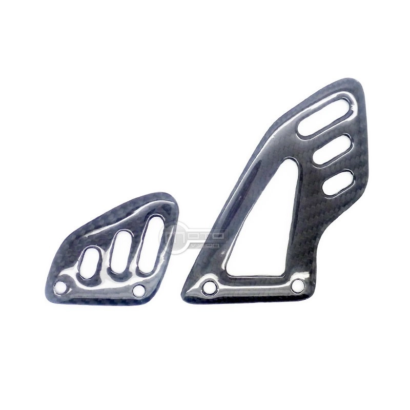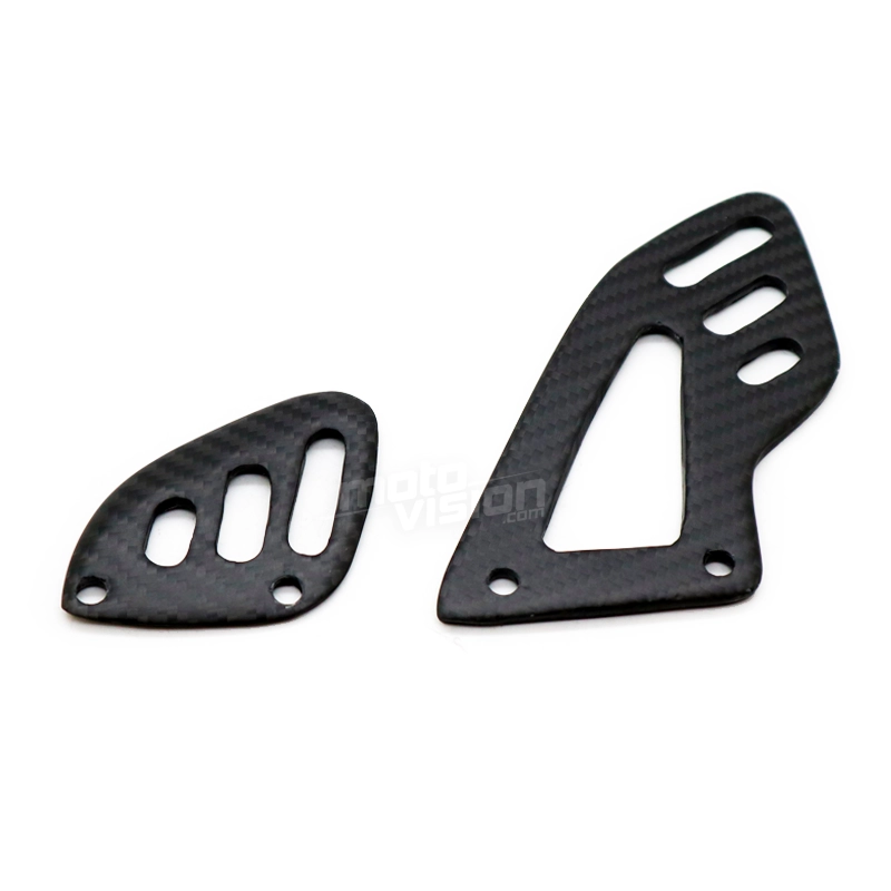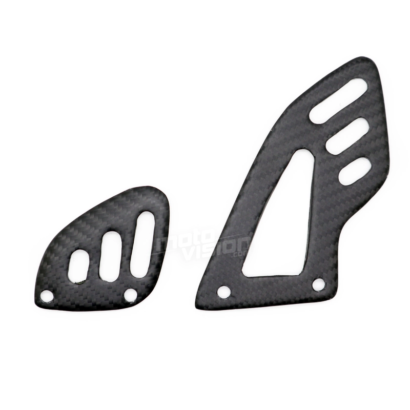 Paire de reposes pieds Carbone Aprilia RSV4 Tuono, livré sans visserie ou autres fixations. Les perçages sont déjà effectués sur les carénages moto en carbone.