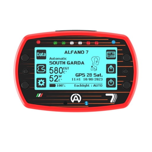 L’ALFANO 7 est équipé d'un GPS à 25 Hz utilisant quatre constellations de satellites : GALILEO (UE), NAVSTAR (États-Unis), GLONASS (Russie) et BEIDOU (Chine). Cette configuration permet d’améliorer considérablement la précision des données de temps et des trajectoires, garantissant une exactitude optimale pour vos performances sur la piste.