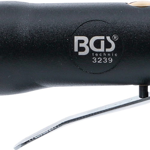Le cliquet à air comprimé BGS avec une taille d'entraînement de 10 mm (3/8") et un couple de 34 Nm est un outil pneumatique utilisé pour le serrage et le desserrage de boulons et écrous dans des espaces restreints.