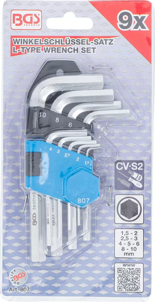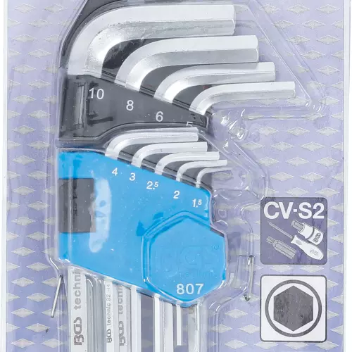 Jeu clés allen courtes six pans intérieurs 1,5 - 10 mm 9 pièces BGS