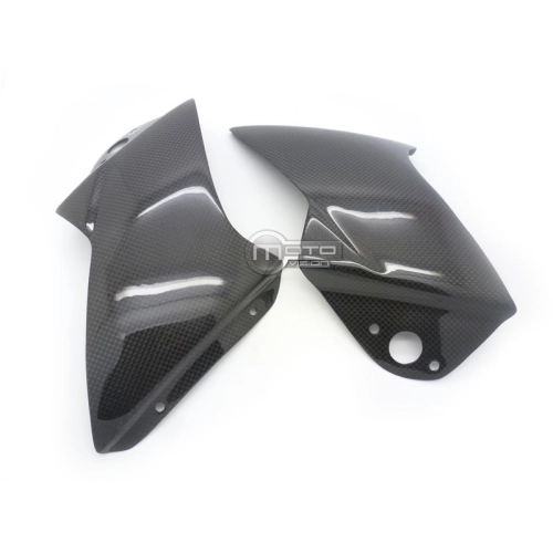 Paire de caches latéraux tête de fourche Carbone Aprilia RSV 1000 2004-2008, livré sans visserie ou autres fixations. Les perçages sont déjà effectués sur les carénages moto en carbone.