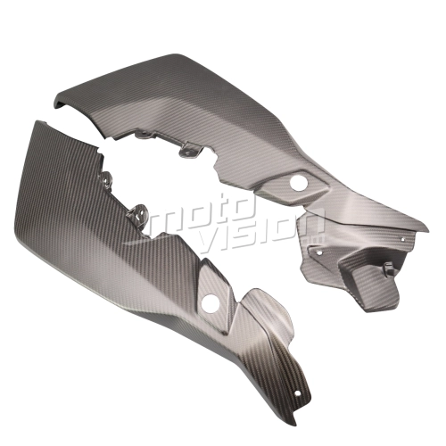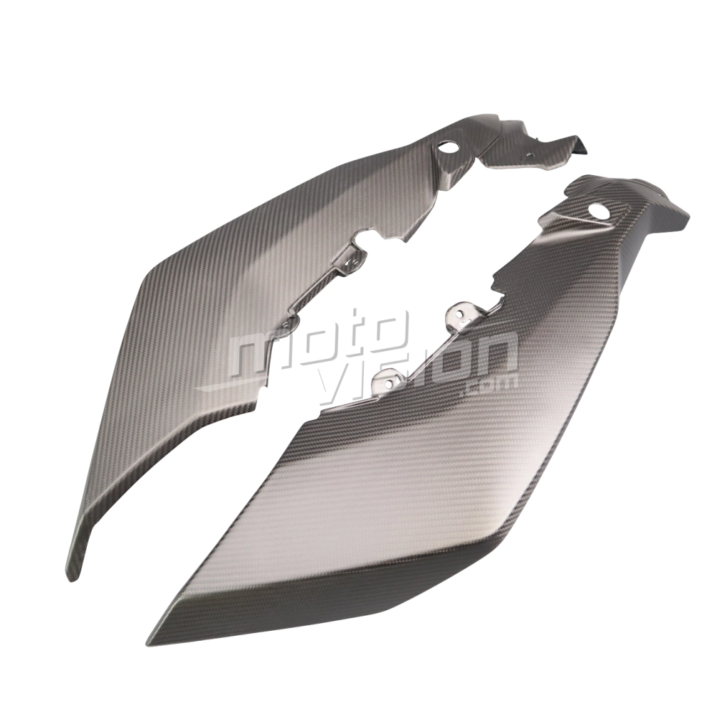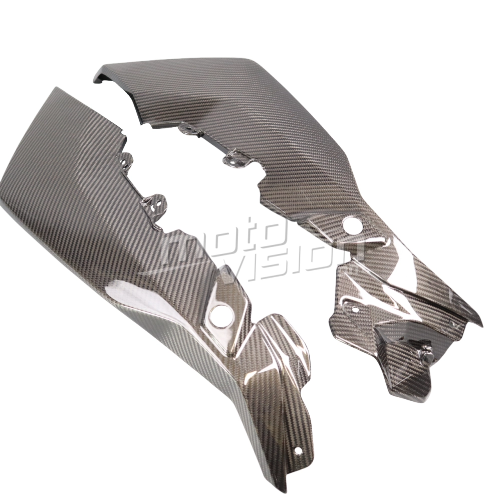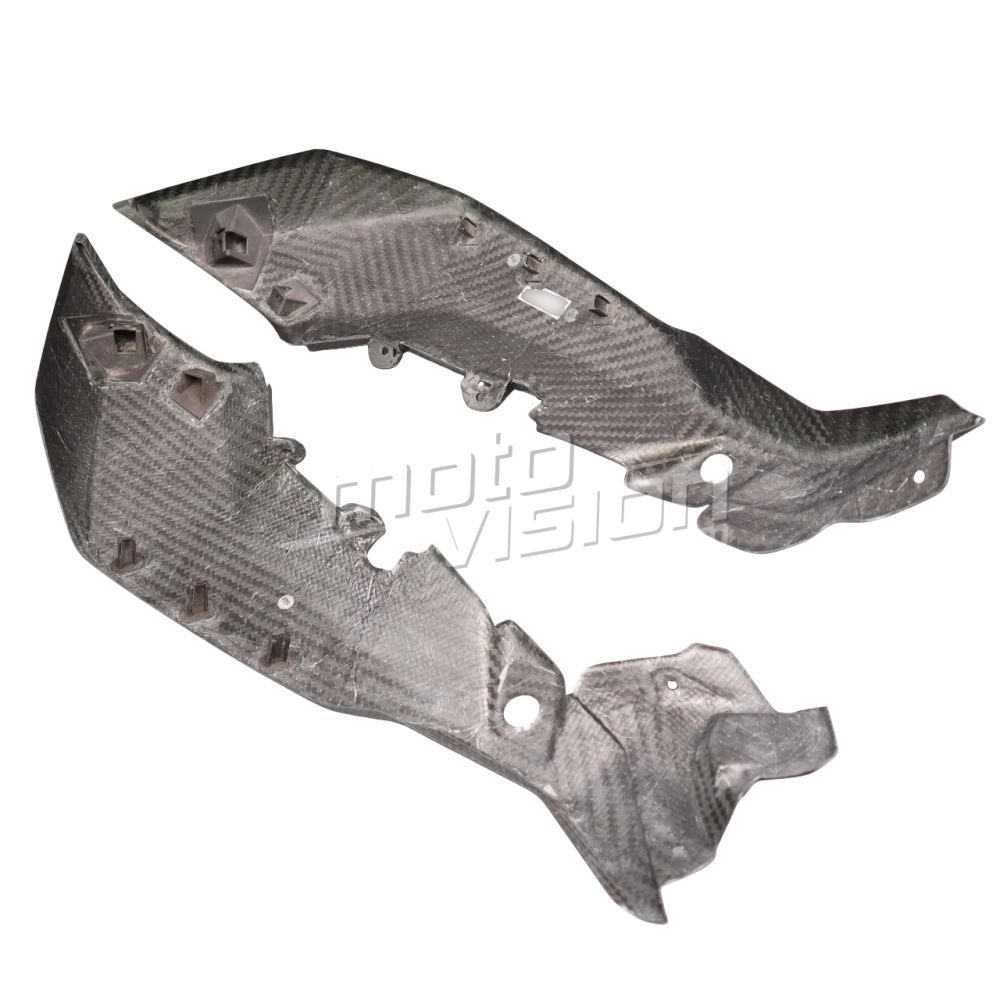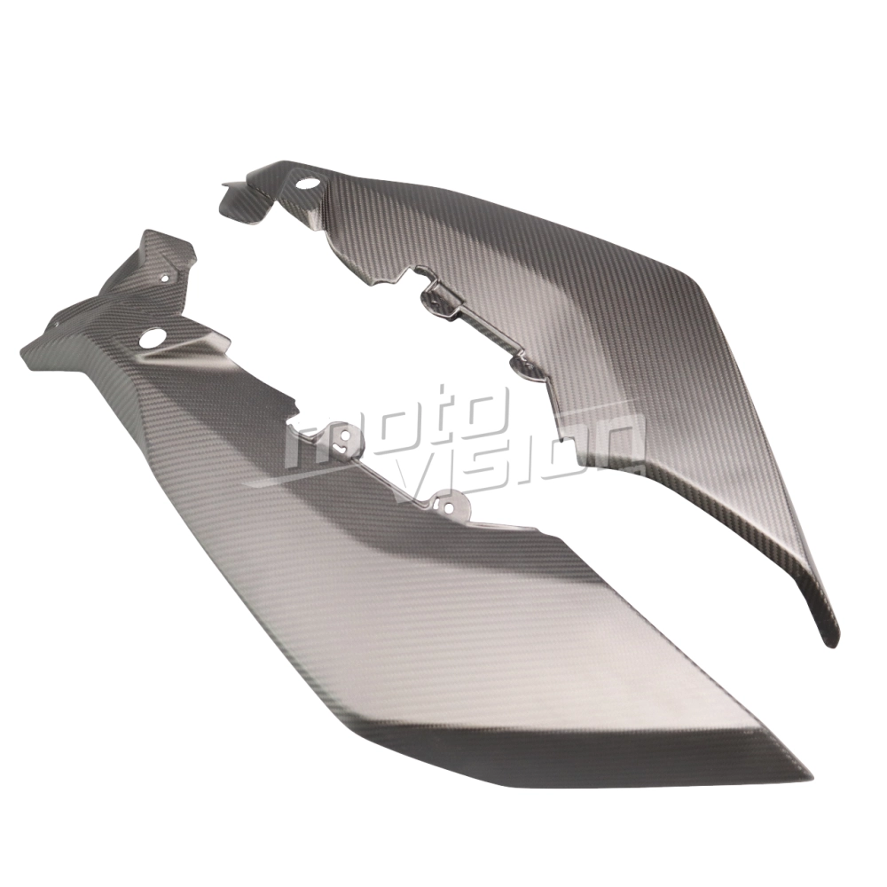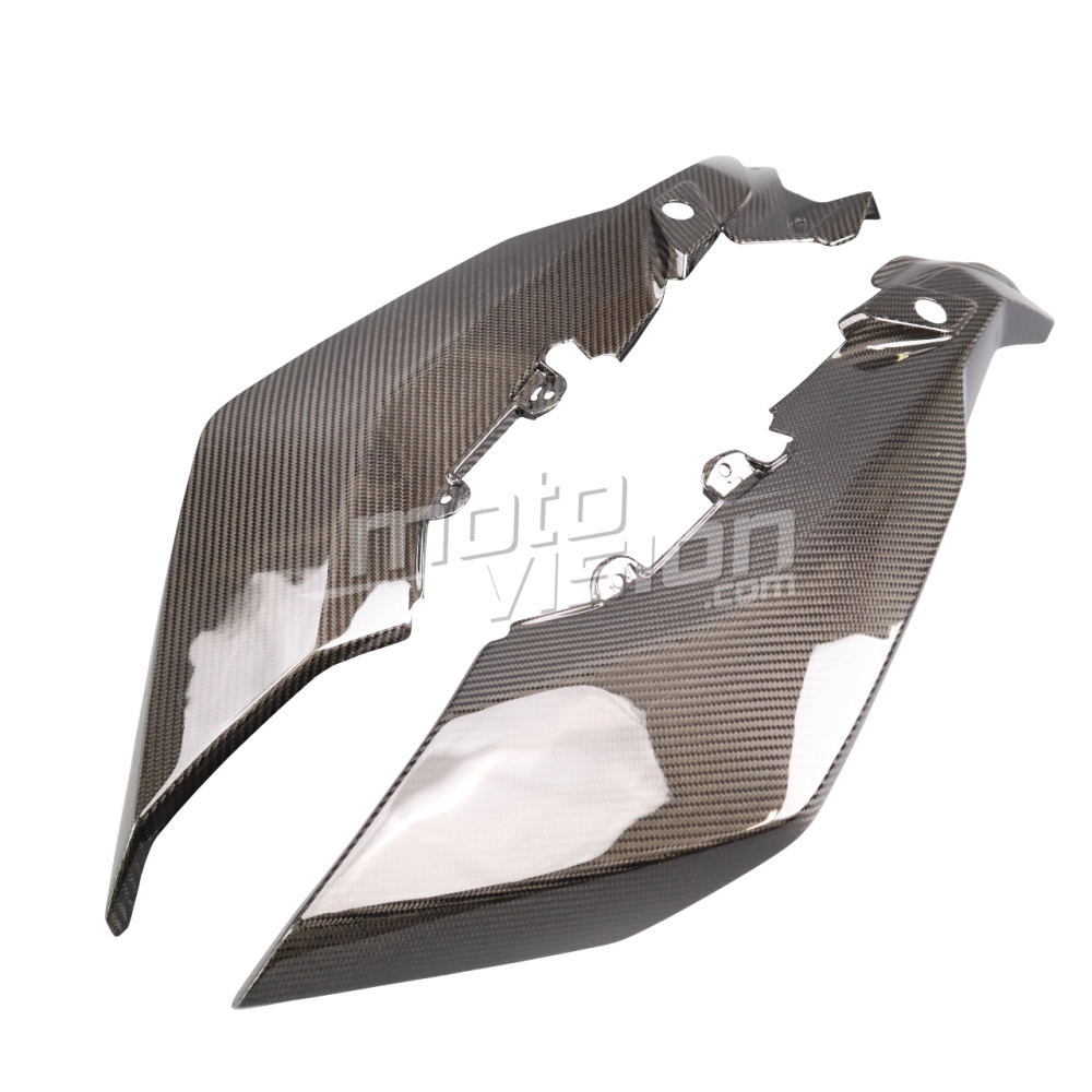 Flancs supérieurs Carbone BMW S1000XR 2020- 2023, livré sans visserie ou autres fixations. Les perçages sont déjà effectués sur les carénages moto en carbone.