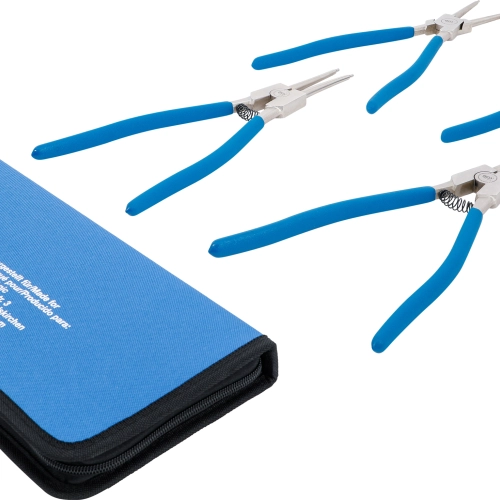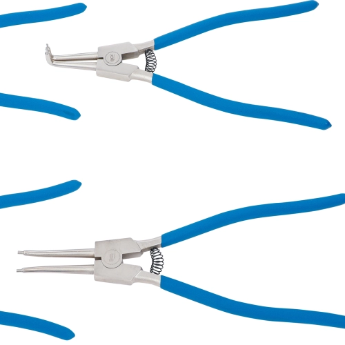 Jeu de pinces à circlips BGS avec 4 pièces de 300 mm. Pointe de pince Ø 3,2 mm avec pointes droites et courbées pour pour fusibles intérieur et extérieur.