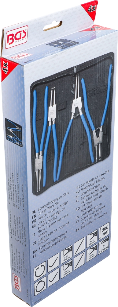 Jeu pinces à circlips 300 mm 4 pièces BGS
