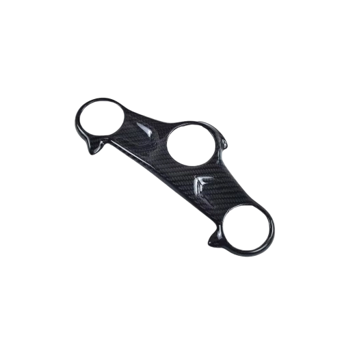 Cache sur té de fourche carbone Honda CBR650R 2019-2023 en carbone véritable, à monter directement sur votre moto. Ce carénage en carbone vous offre plusieurs avantages :