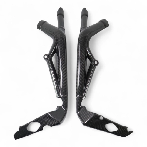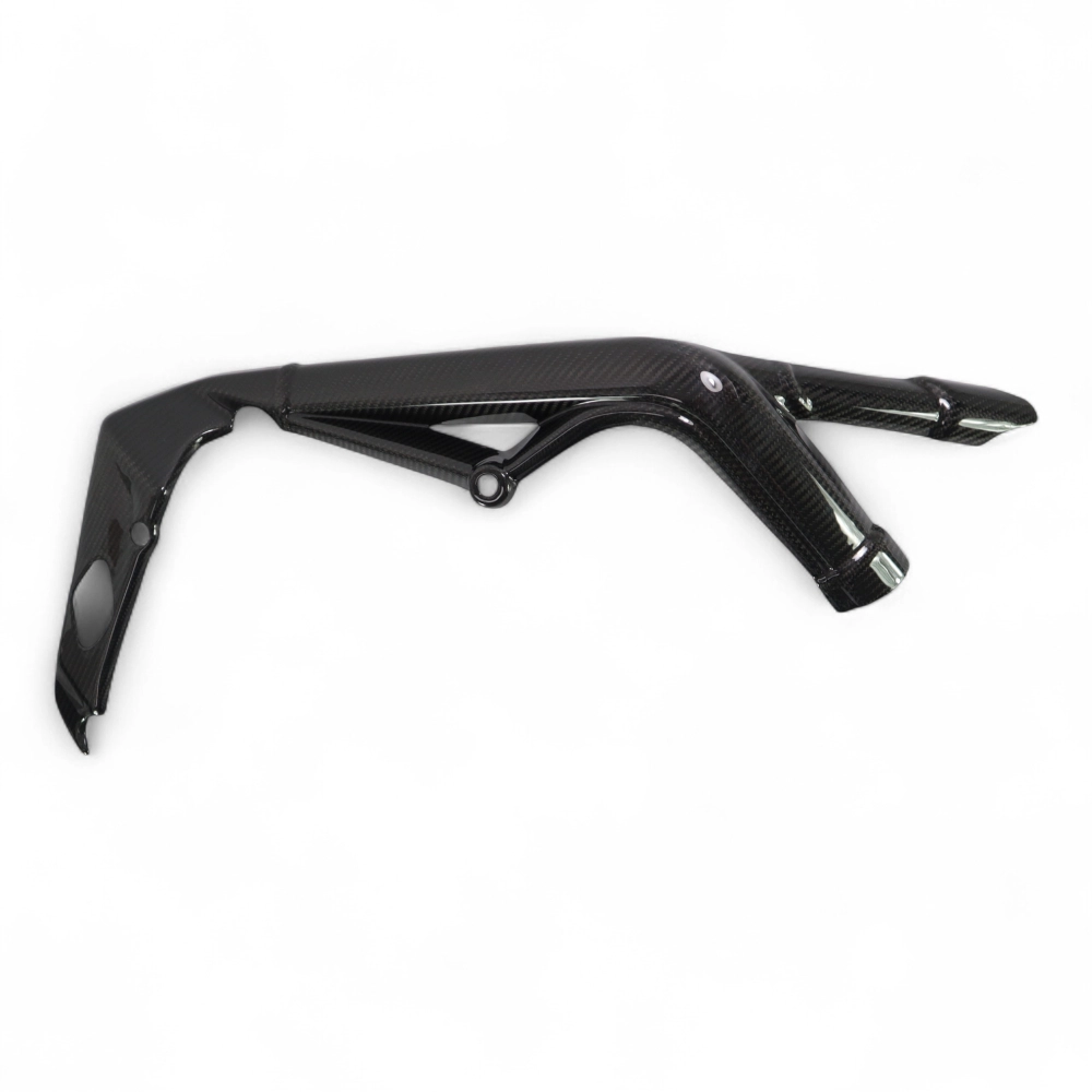 Cache Cadre Carbone Triumph Street Triple 660/765 2017-2022 , livré sans visserie ou autres fixations. Les perçages sont déjà effectués sur les carénages moto en carbone.