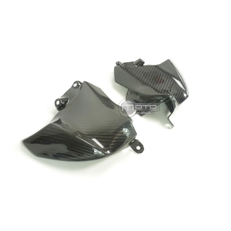 Paire de caches lateraux Carbone Suzuki GSX-S 1000, livré sans visserie ou autres fixations. Les perçages sont déjà effectués sur les carénages moto en carbone.