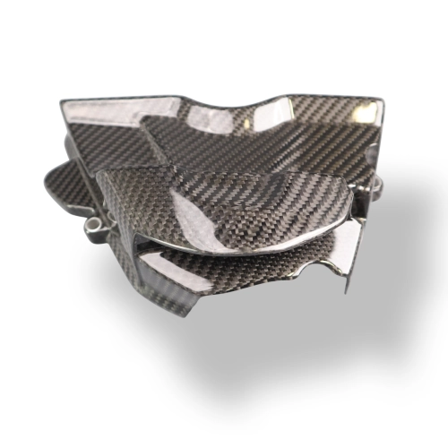 Cache pignon Carbone Triumph Daytona 660 2024-, livré sans visserie ou autres fixations. Les perçages sont déjà effectués sur les carénages moto en carbone.