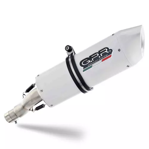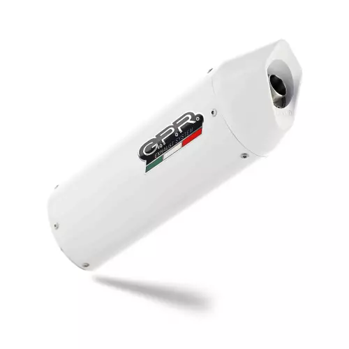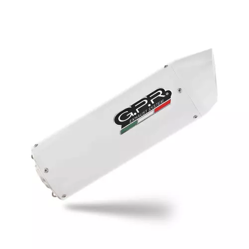La série de silencieux ALBUS de GPR est dotée d'un corps en aluminium et de capuchons Avional usinés CNC. L'échappement bénéficie d'un traitement céramique, capable de résister à des températures élevées. Il a une forme elliptique avec des mesures de 90 x 120 MM. Plus légère que l'échappement d'origine, une ligne d'échappement GPR permet également une hausse significative des performances, sans compter un gain de poids.