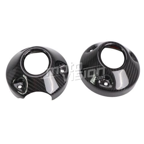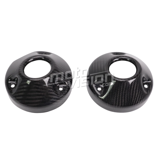 Caches sur sortie d'échappement Carbone Harley Davidson Sportster S 1250 2021-, livré sans visserie ou autres fixations. Les perçages sont déjà effectués sur les carénages moto en carbone.