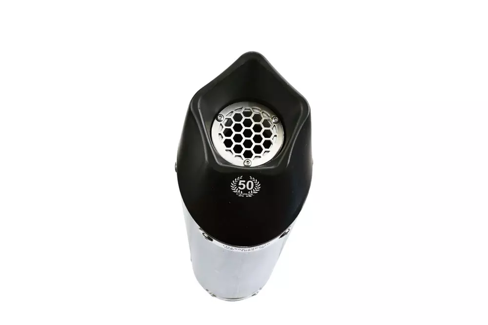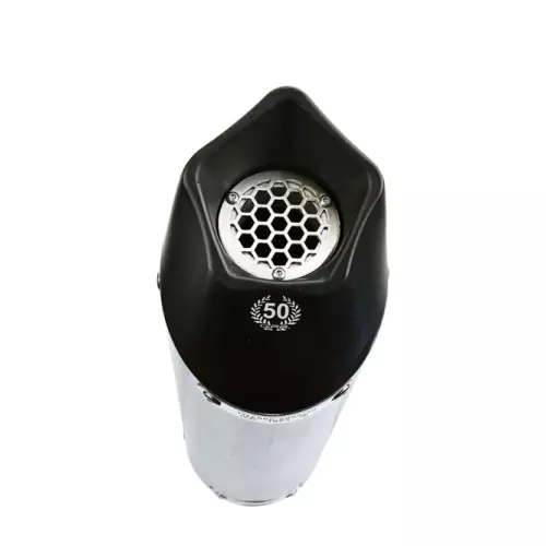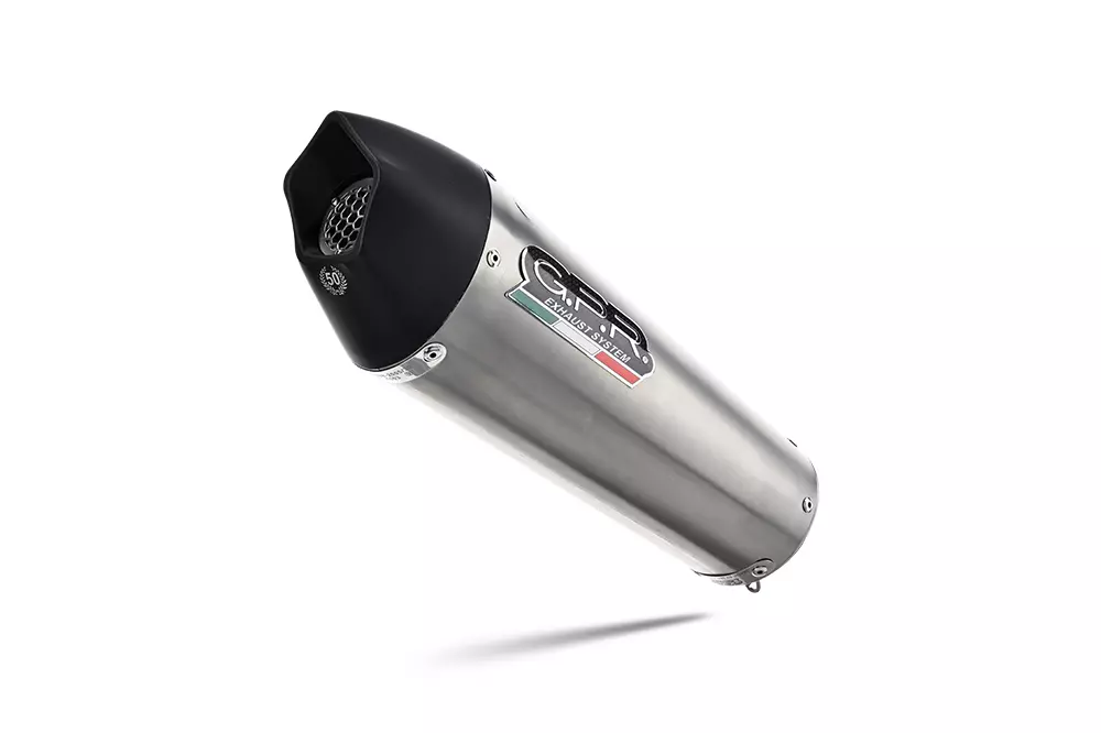 Le GP Anniversary Titanium de GPR a été créé pour célébrer le 50e anniversaire de GPR en 2018. Il possède un corps en titane noir, des capuchons avioniques fabriqués par usinage CNC et une sortie pentagonale. Sa forme conique ronde mesure 90 MM x 130 MM. Plus légère que l'échappement d'origine, une ligne d'échappement GPR permet également une hausse significative des performances, sans compter un gain de poids.