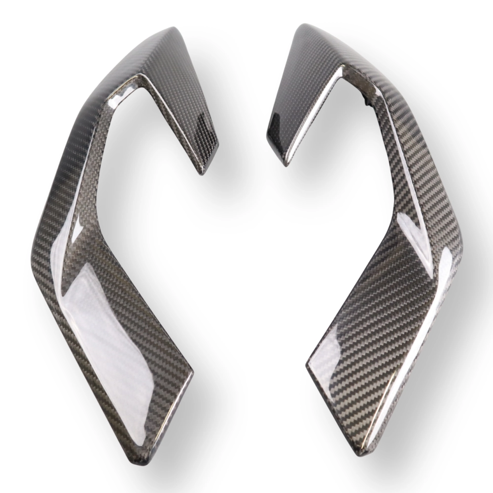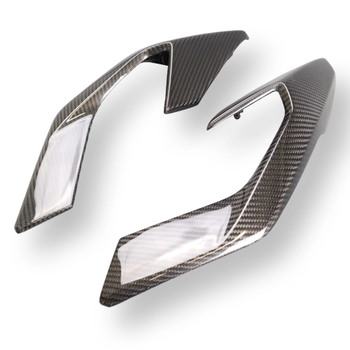 Ecopes de réservoir carbone Triumph Street Triple 765 2023-, livré sans visserie ou autres fixations. Les perçages sont déjà effectués sur les carénages moto en carbone.
