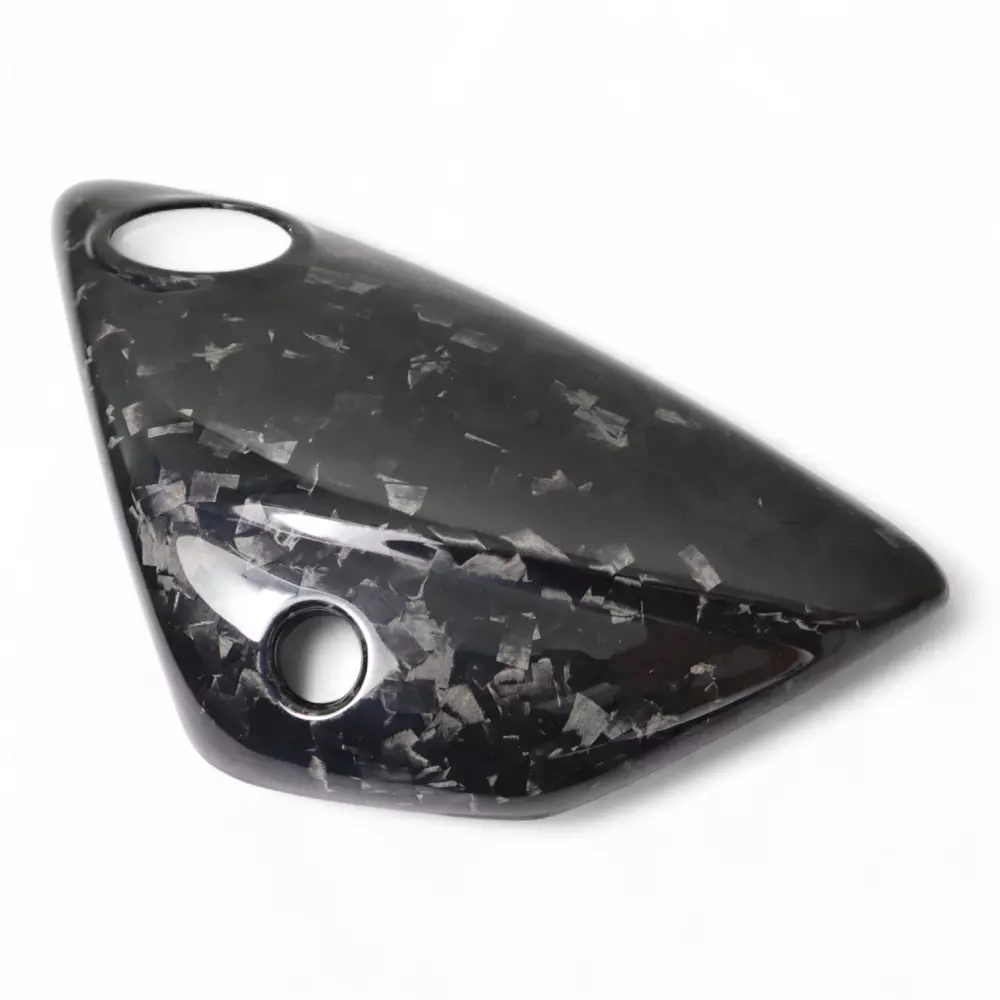 Cache latéral gauche carbone Triumph Rocket III R/GT 2020-, livré sans visserie ou autres fixations. Les perçages sont déjà effectués sur les carénages moto en carbone.
