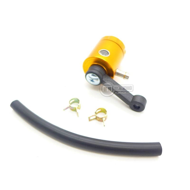 Réservoir arrière de liquide de frein en aluminium taillé dans la masse et anodisé (or), avec membrane de récupération du volume consommé,