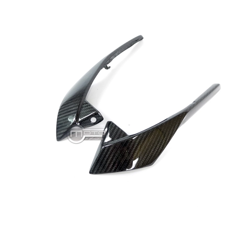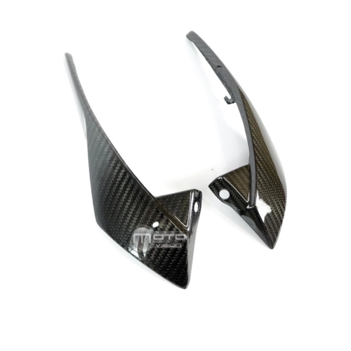 Paire de caches latéraux de feux Carbone Yamaha FZ8, livré sans visserie ou autres fixations. Les perçages sont déjà effectués sur les carénages moto en carbone.