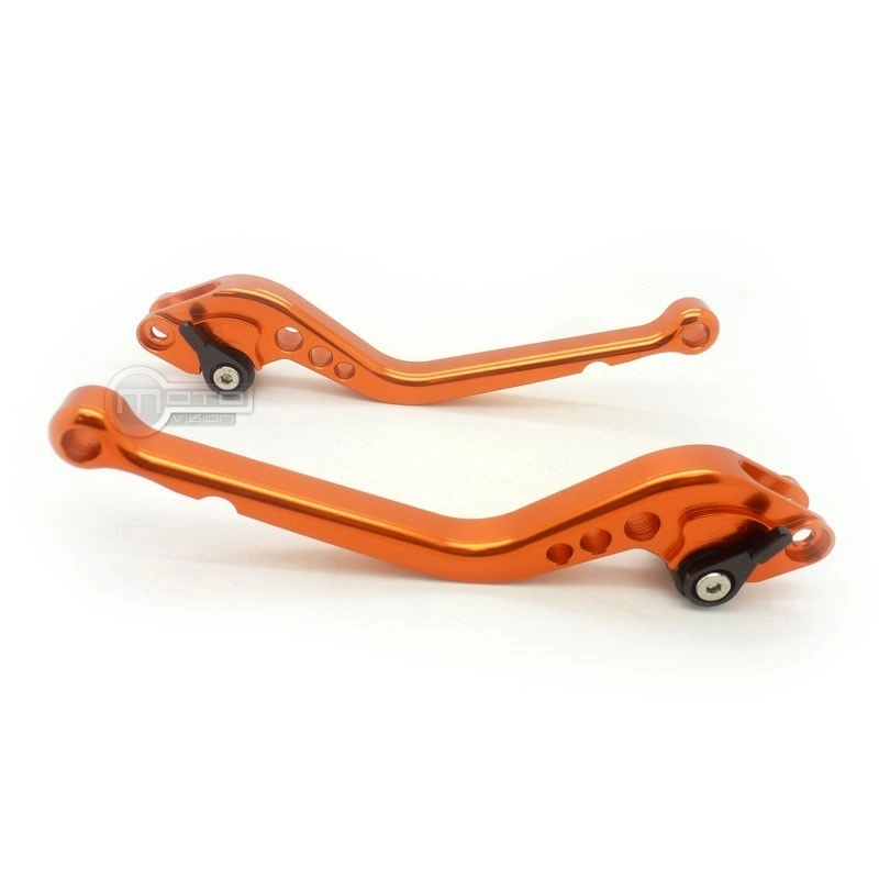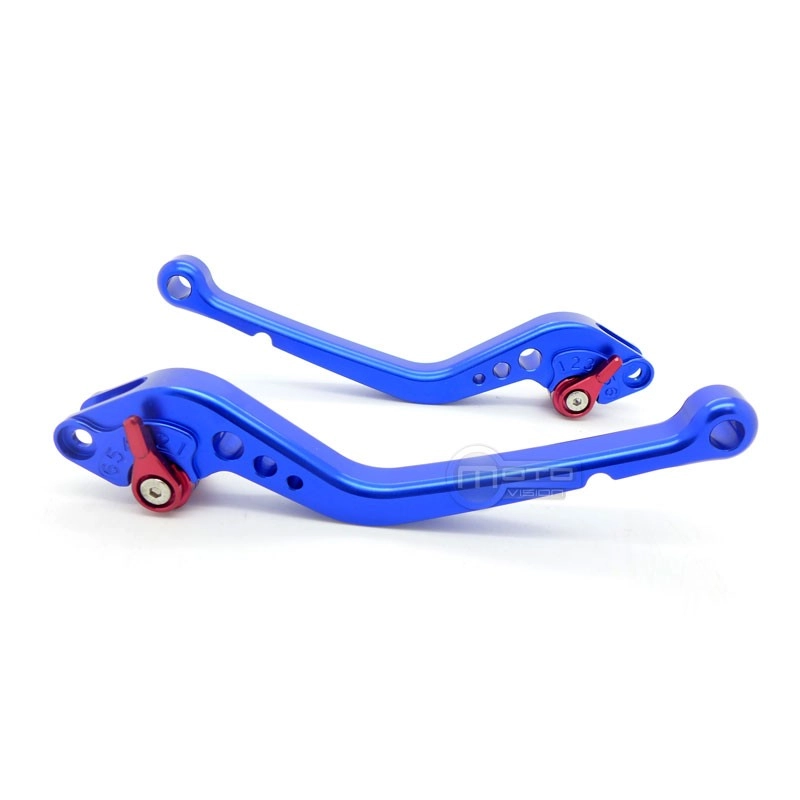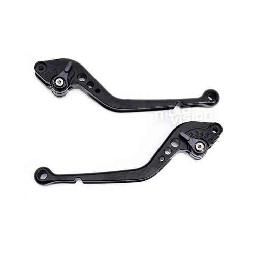 Paire de leviers de frein et d'embrayage longs en aluminium usinés CNC pour une résistance et une précision accrues. Ces leviers sont conçus pour une compatibilité parfaite avec les modèles de motos suivants : Suzuki B-King 2008-2011. La liste complète des modèles de moto est à retrouver dans l'onglet compatibilité.