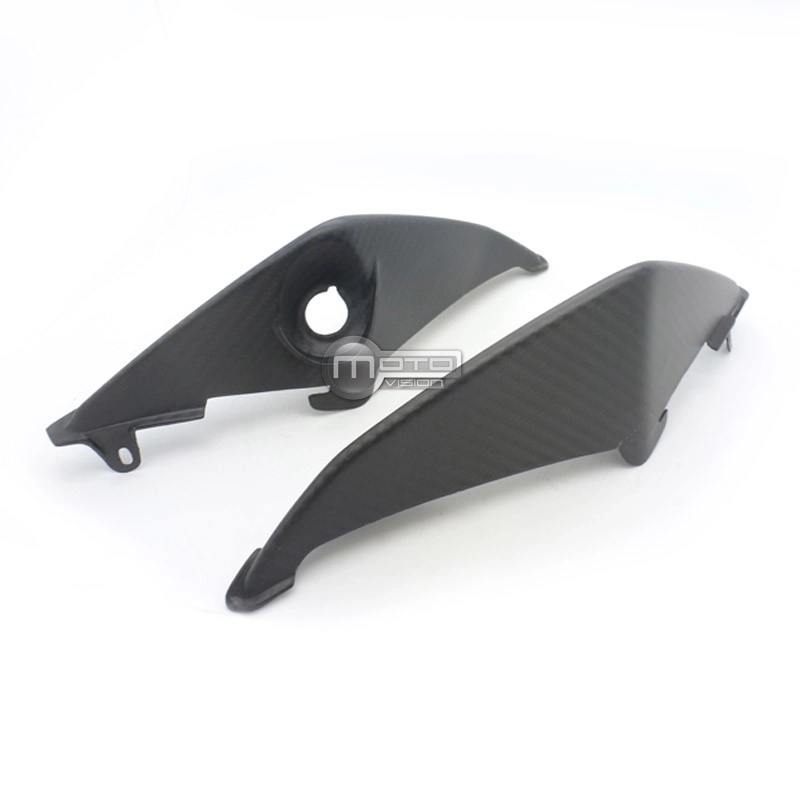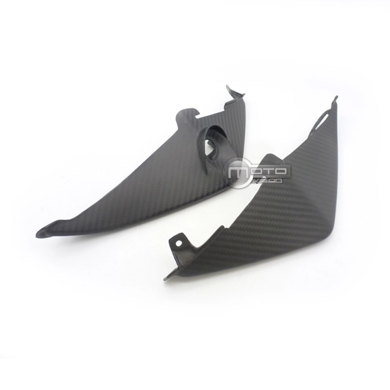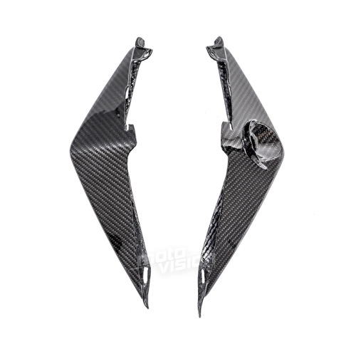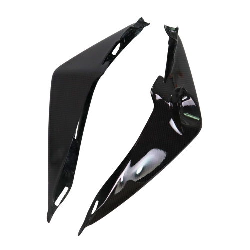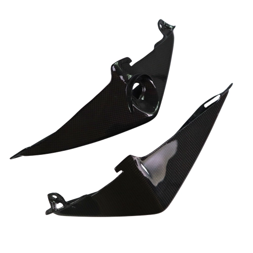 Paire de caches sous selle Carbone Suzuki GSR 750 2011-2016, livré sans visserie ou autres fixations. Les perçages sont déjà effectués sur les carénages moto en carbone.