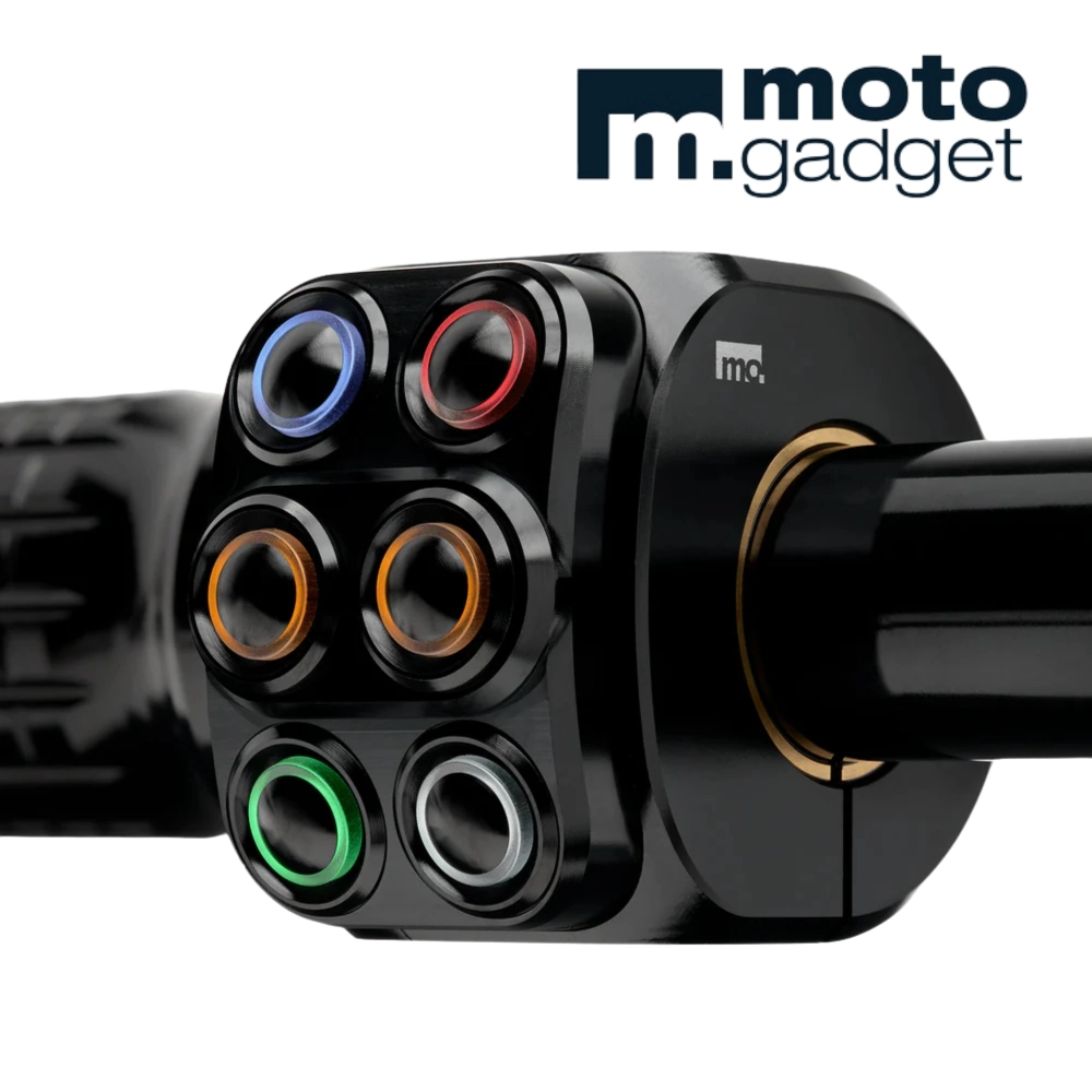 Le mo.switch pro est "prêt à être connecté". Tout a déjà été entièrement câblé, Motogadget a déjà effectué le raccordement des différents boutons avec leur éclairage LED respectif, ce qui prend beaucoup de temps. Les boutons-poussoirs utilisés sont de haute qualité, résistants aux vibrations et protégés contre les jets d'eau selon IP65. La taille des boutons et le point de pression ergonomique donnent une sensation de commutation optimale lors de l'utilisation avec des gants.