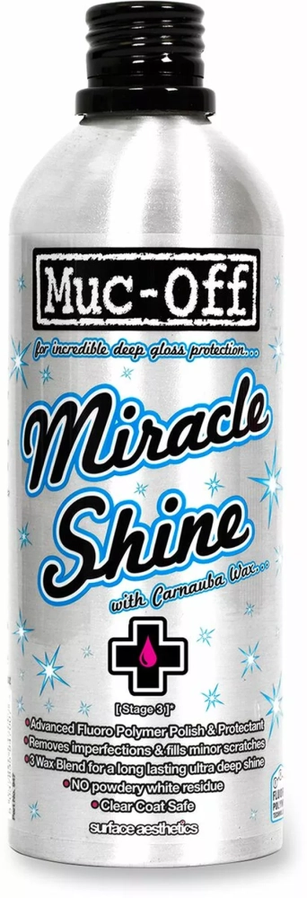 Miracle Shine de Muc-Off est le produit de polissage et de protection de haute qualité Ultime. Il retire les imperfections et comble les petites éraflures du carénage de votre moto.