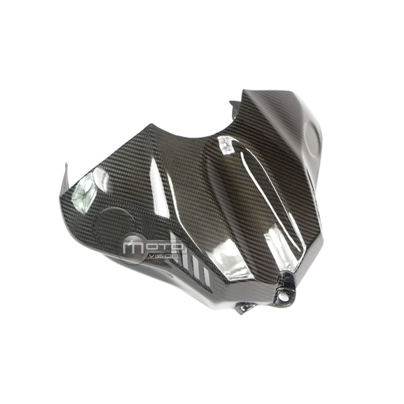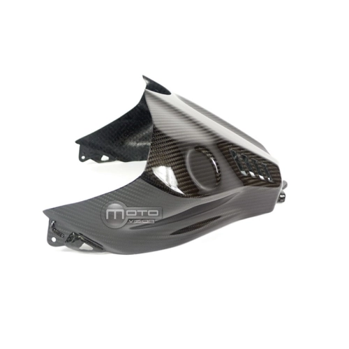 Cache réservoir carénage Carbone Yamaha R1 2015-2019 à monter directement sur les points de fixation d'origine de votre moto en remplacement du carénage d'origine. Les pièces en carbone sont livrées sans visserie.