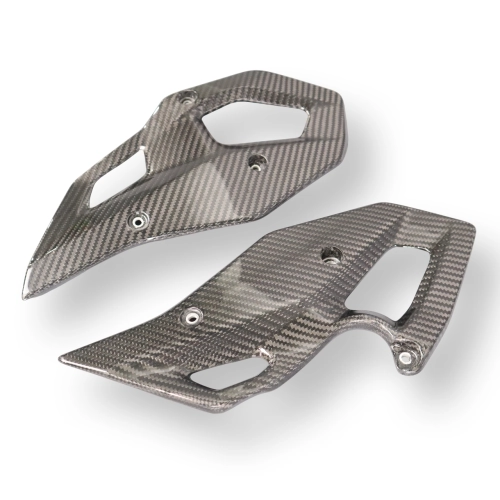 Paire de talonnette Carbone BMW R1300GS 2024-, livré sans visserie ou autres fixations. Les perçages sont déjà effectués sur les carénages moto en carbone.